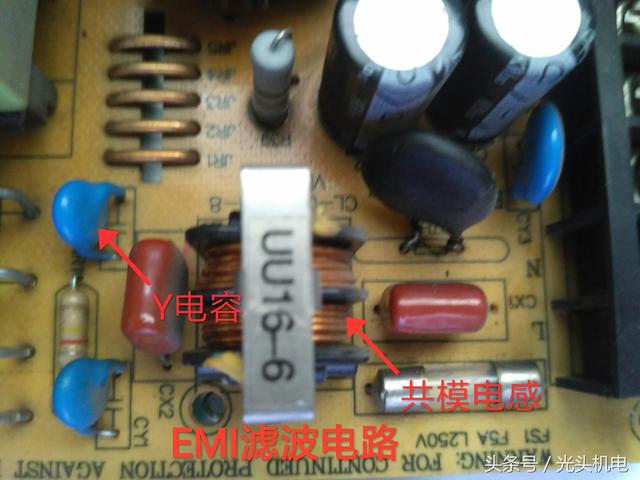 EMI濾波電路是 市電進(jìn)入電源之后的首先經(jīng)過的電路,其主要作用就是阻礙電網(wǎng)到電源以及電源到電網(wǎng)的EMI干擾,同時(shí)也可以起到抑制突波、保護(hù)電源的作用 ,主要元件是 X電容,Y電容,共模電感。